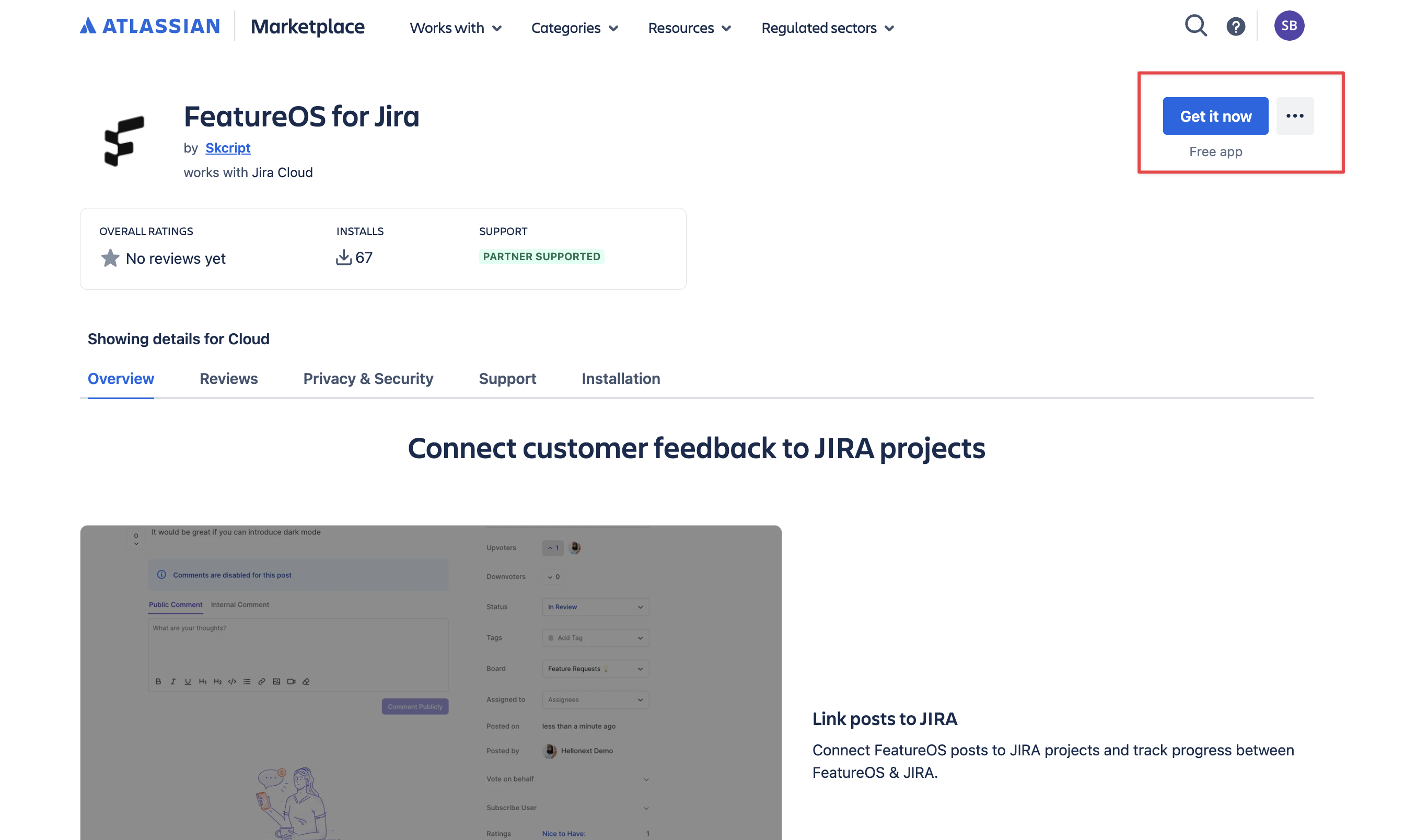 Visit https://marketplace.atlassian.com/apps/1227649/hellonext-for-jira and click on Get it now.